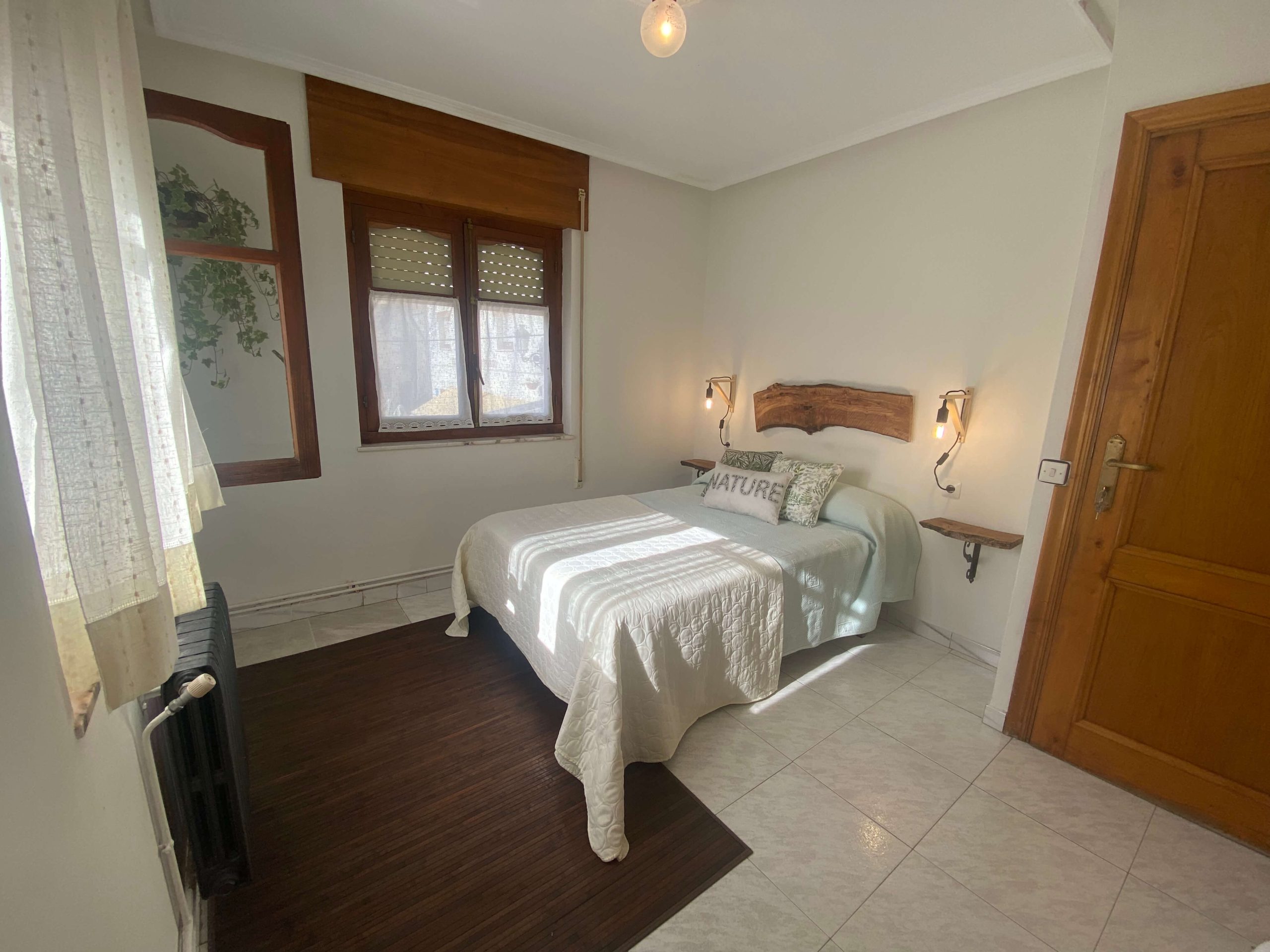 Acougo Pueblo es una luminosa habitación con dos ventanas que dan a la plaza del pueblo, llenando el espacio de luz natural. Cuenta con una mesa para trabajar y un baño grande y completo, ofreciendo comodidad y funcionalidad.